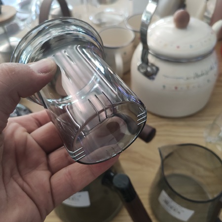 قوری دمنوشساز پیرکس رنگ دودی تک دسته شیک