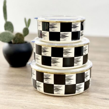 قیمت و خرید ست نگهدارنده غذا 3 تایی لعابی آجار طرح شطرنجی xap-21-0517